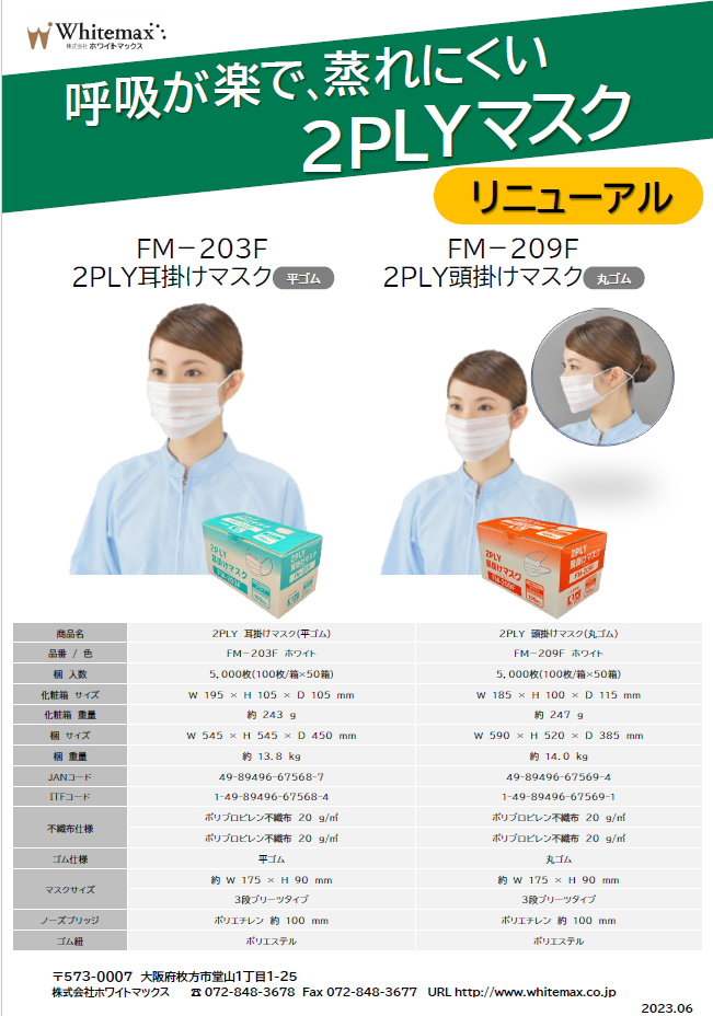 FM-203N 2PLY耳掛けマスク ⇛ FM-203F 2PLY耳掛けマスク