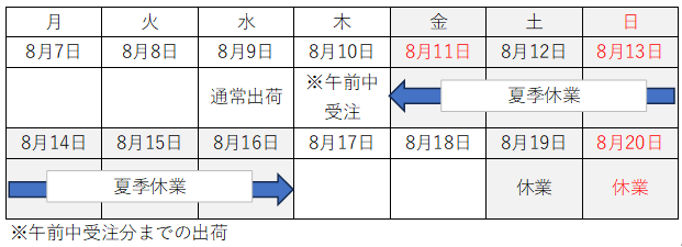 *夏季休業日前は、注文が込みあいますので、お早めに、ご注文いただけますようお願いします。