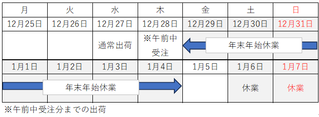 *年末年始休業日前は、注文が込みあいますので、お早めに、ご注文いただけますようお願いします。