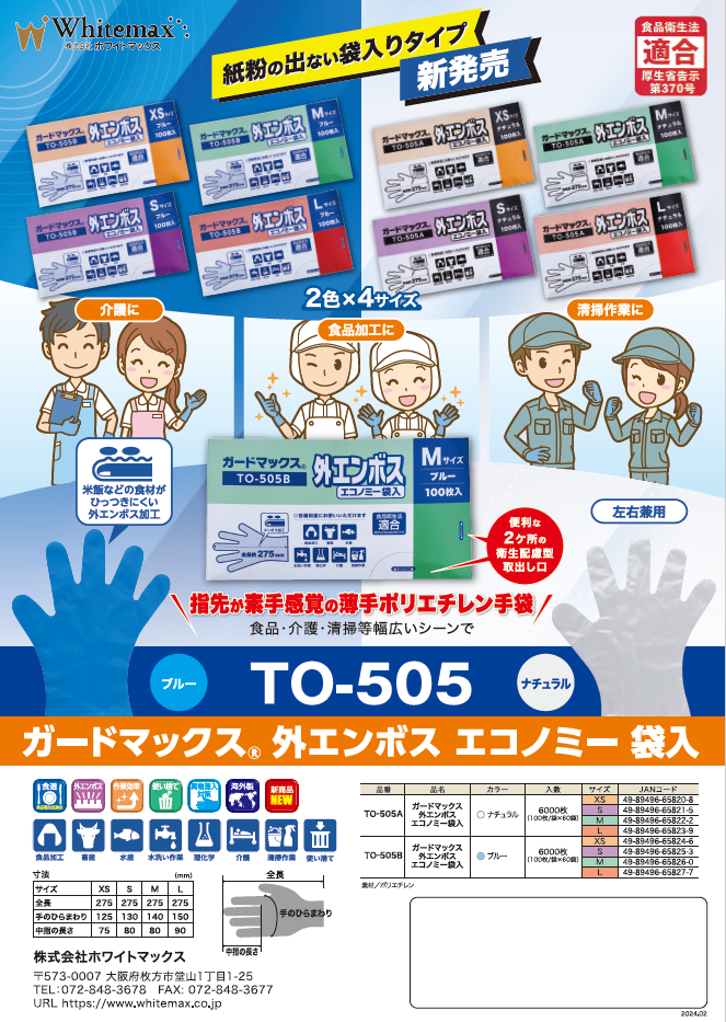 (手袋)TO-505 ガードマックス 外エンボス エコノミー 袋入 新発売