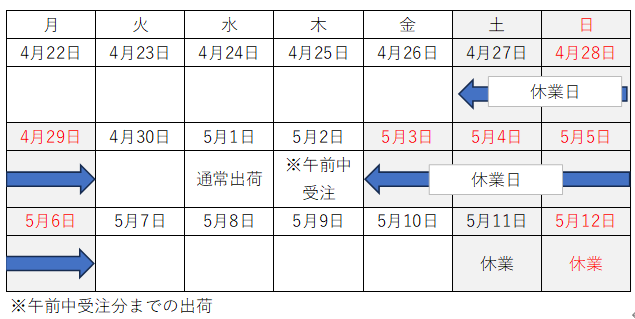 標記の通り、ゴールデンウィークの休業日をご連絡申し上げます。